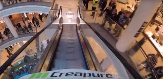 Dieses Rennen ist nichts für Menschen mit Platzangst: Mit schwindelerregendem Speed sauste Mountainbiker Johannes Fischbach im Februar durch ein Einkaufszentrum in Essen (D). Währenddessen ließ er eine Helmkamera laufen und veröffentlichte den Clip anschließend auf YouTube.