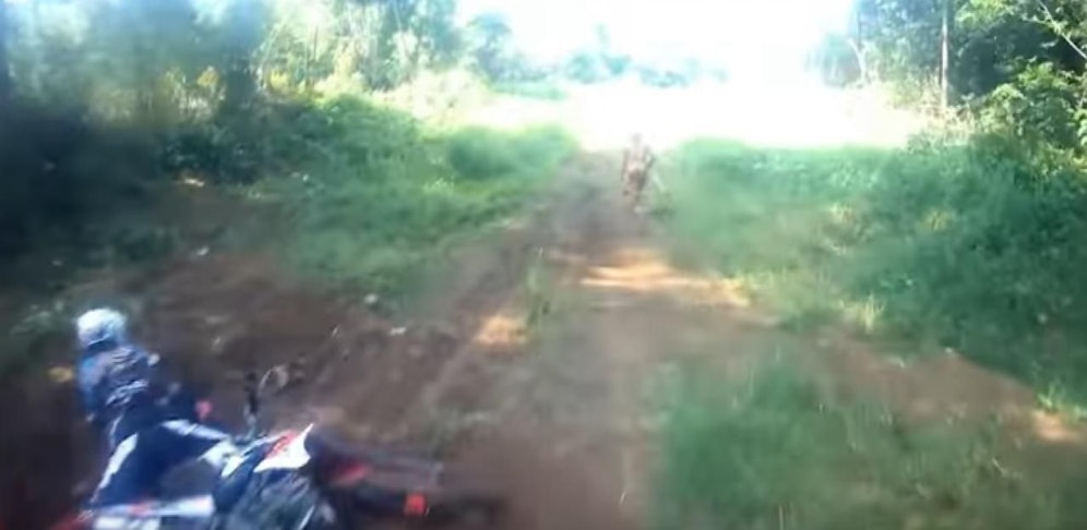 Bei einer Motorradtour durch den Wald machten einige Männer eine äußerst mysteriöse Entdeckung: In einer abgelegenen Gegend der indonesichen Insel Sumatra filmte ein Biker mit seiner Helmkamera eine Gestalt aus dem Gebüsch springen. Einer seiner Freunde viel dabei vor Schreck sogar von seiner Maschine.