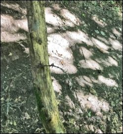 Es war aber nicht das einzige „Hindernis", auch ein abgebrochenes Holzstück, präpariert mit Stacheldraht, legte ein Unbekannter entlang der Strecke aus.