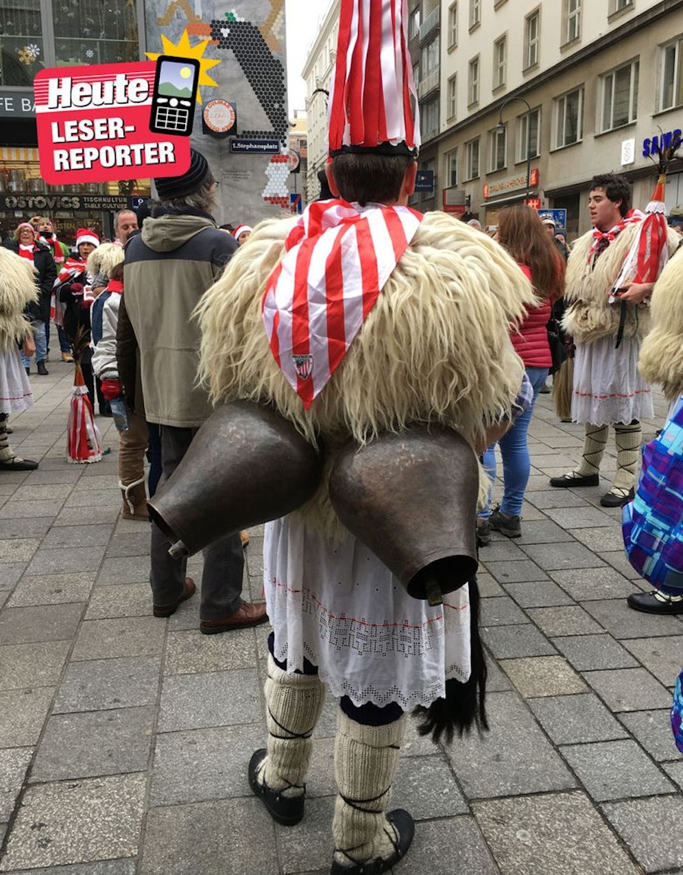 Bevor es am Donnerstag-Abend zum großen Spiel zwischen Rapid Wien und Athletic Bilbao ging, machten einige Fans aus Spanien die Innenstadt unsicher. Mit traditionellen Kostümen tanzten und sangen sie am Stephansplatz.