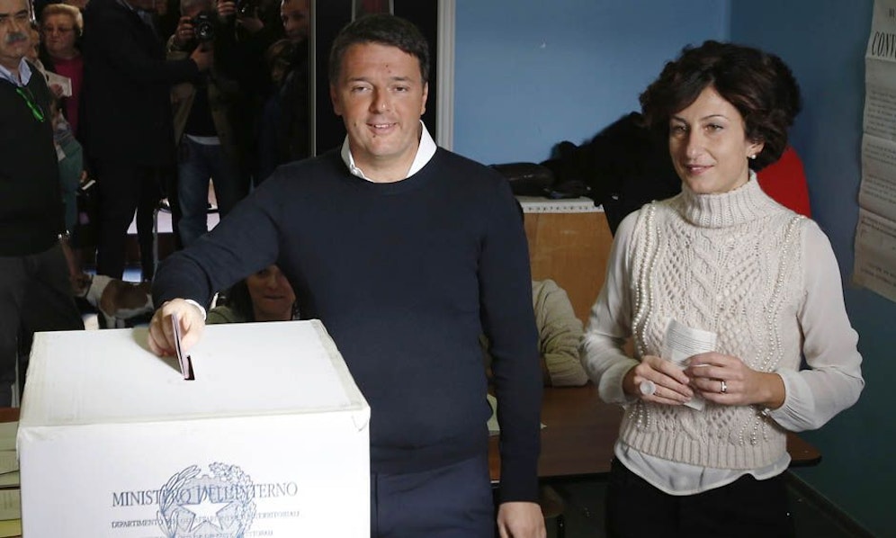 Premier Matteo Renzi gab in seinem Heimatort Pontassieve bei Florenz seine Stimme ab. Er erschien allerdings ohne Ausweis im Wahllokal. "Ich hoffe, dass ich dennoch erkannt werde", sagte er entschuldigend. Die Wahlhelfer ließen es durchgehen. Renzis Frau Agnese Landini hatte ihren Ausweis gewissenhaft dabei.