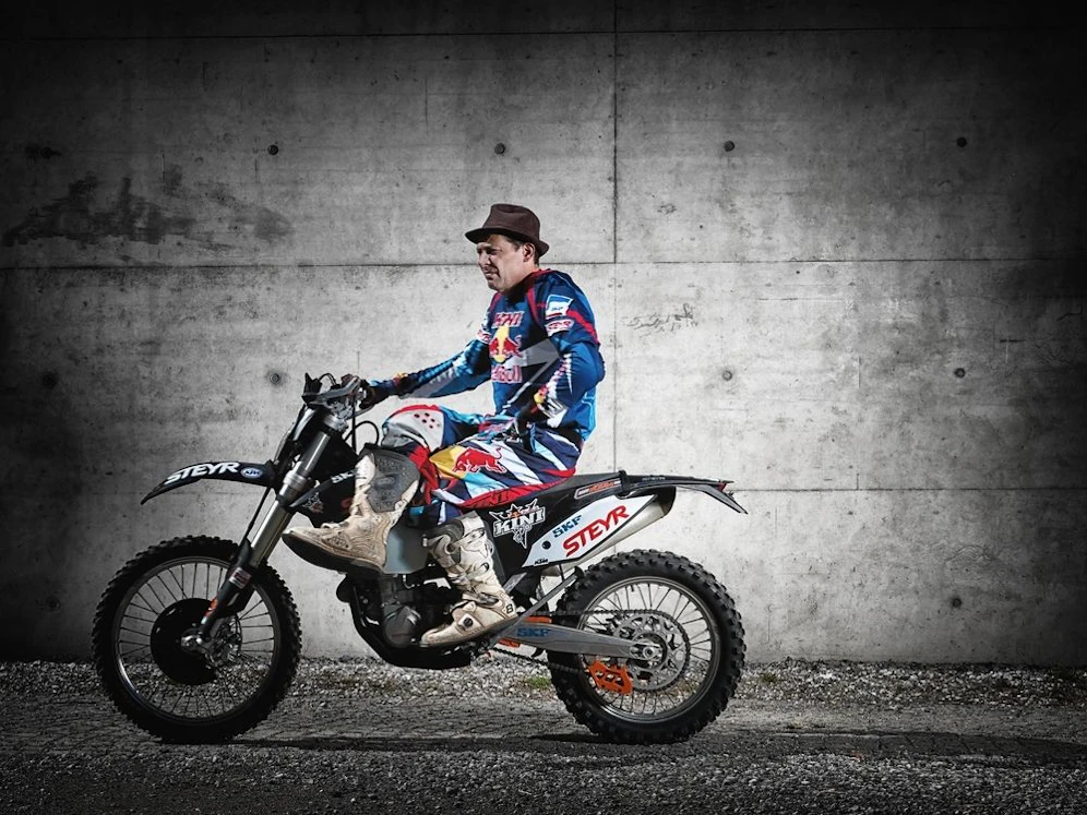 Ein Mann muss tun, was ein Mann tun muss – daher schwingt sich Schauspieler Gregor Bloeb wieder in den Sattel seiner KTM 450.
