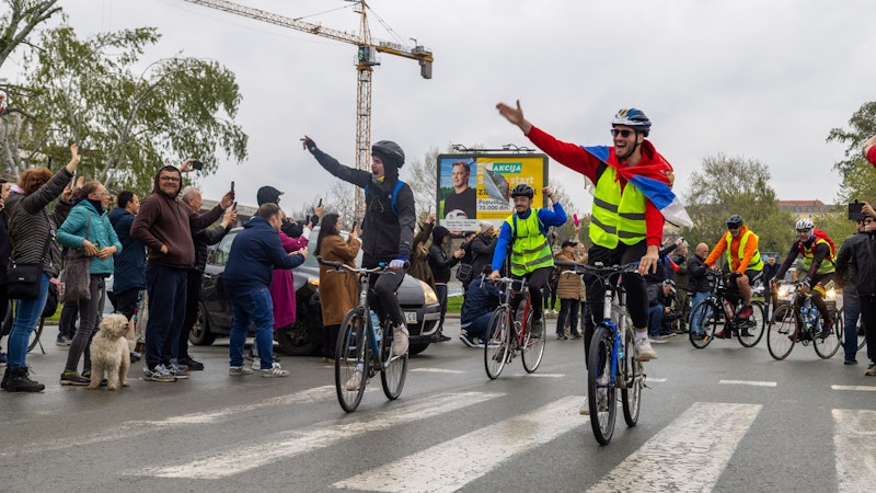 Das Anliegen vieler Serben: das Recht, ohne Angst, Zensur und Gewalt zu leben. Dafür setzen sich nun auch Studenten aufs Rad und reisen durch mehrere Länder. Im französischen Straßburg möchten sie ihre Stimme auf internationaler Ebene Ausdruck verleihen.