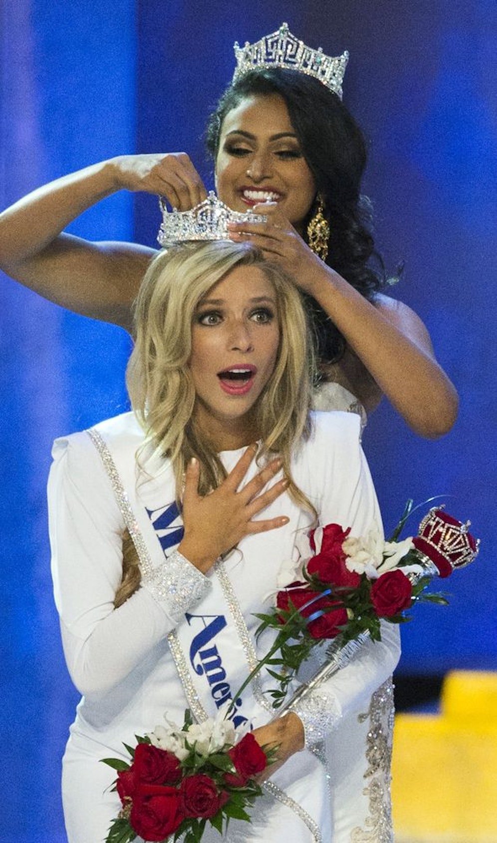 Blutjung, blond und total baff: So zeigte sich die 22-jährige Kira Kazantsev im Rahmen ihrer Krönung zur schönsten Frau der USA. Wie es die Tradition gebührt, wurde ihr das funkelnde Diadem von Vorgängerin Nina Davuluri aufgesetzt. Und siehe da: Das Krönchen passte wie angegossen!