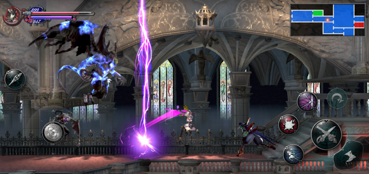 Auch auf Mobilbildschirmen schlüpfen wir in die Rolle von Heldin Miriam, die sich durch ein Schloss voller Gefahren und Dämonen kämpfen muss. Die Levels zeigen sich dabei in 2D, die Figuren und Objekte allerdings in 3D. Wie es für ein Metroidvania gebührt, muss sich Miriam durch Kämpfe und Fundstücke immer weiter mit neuen Waffen, Fähigkeiten und Stufenaufstiegen rüsten, um einerseits in neue Areale vorzustoßen, andererseits gegen den Spieltod gerüstet zu sein.
