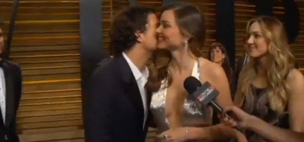 Obwohl das Model gerade in ein Interview verwickelt war, zögerte Bloom nicht und drückte seiner Ex einen Schmatzer ins Gesicht. "Hi, du siehst großartig aus", säuselte er noch, bevor er im Rückwärtsgang die Szene verließ.