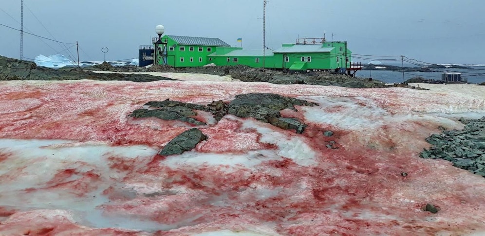 Unglaublich Aufnahmen aus der Antarktis: Auf einer Insel am Südpol färbte sich der Schnee rot! Dabei handelt es sich aber nicht etwa um blutenden Schnee, sondern um eine Alge. Das konnten Wissenschaftler einer ukrainischen Forschungsstation in der Antarktis nun auf Bildern festhalten.