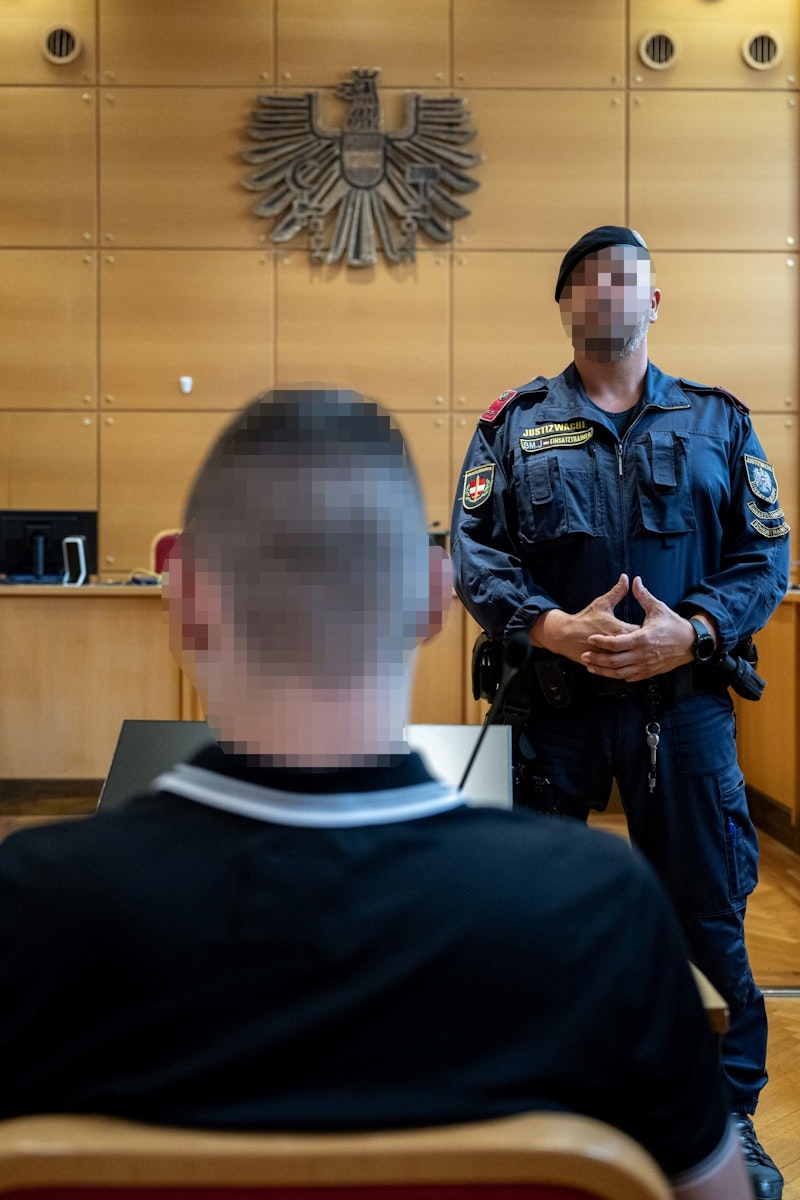 Der Medienandrang für den Prozess war wie erwartet groß. Um 9.26 Uhr öffnet sich die Tür des Saal 61 am Linzer Landesgericht. Mehrere Beamte bringen den Angeklagten in den Verhandlungssaal. Der 19-jährige Bursch hat kurz geschorenes Haar, trägt ein schwarzes Polo-Shirt, hat eine dunkle Hose und Sportschuhe an.