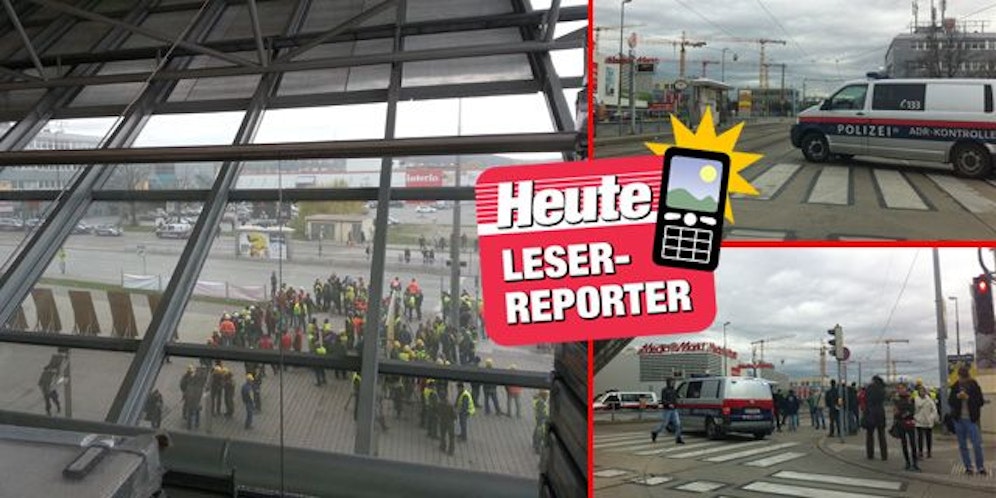 Leserreporter beobachteten, wie sich die Arbeiter nach der Evakuierung vor einer Baumax-Filiale versammelten und eine vorläufige Straßensperre errichtet wurde. Sie erstatteten Meldung an die "Heute"-Redaktion.