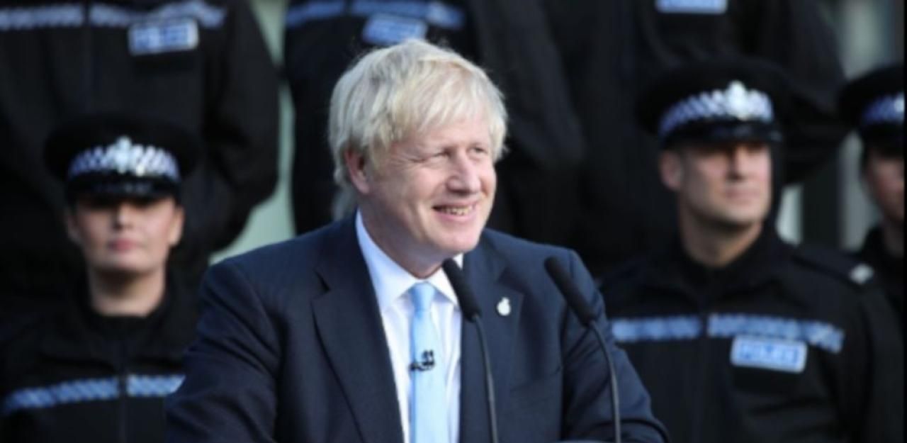 Beim Besuch einer Polizeischule hat der britische Premierminister Boris Johnson einen verstörenden Auftritt hingelegt.