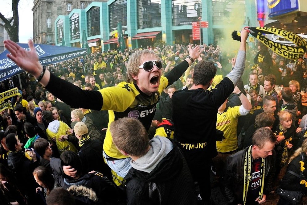 Die Dortmunder Fans unter den 80.720 Zuschauern im ausverkauften Stadion hatten sich vom Last-Minute-Sieg der Bayern in Bremen die Meisterlaune nicht verderben lassen. Die BVB-Profis erfuhren vom 2:1-Siegtreffer der Münchner, der die vorzeitige Entscheidung in der Meisterschaft zugunsten des Tabellenführers vereitelte, in der Kabine. Ihre Konzentration galt ohnehin der Aufgabe gegen Gladbach. "Das ganze Leben ist eine Ansammlung von Herausforderungen. Und auch das Spiel heute ist für uns eine Herausforderung", kommentierte der unbeeindruckte Trainer Jürgen Klopp im Anschluss an den Bayern-Sieg.