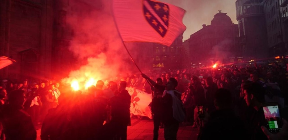 Bosnien-Fans zündeln mit Pyro am Stephansplatz