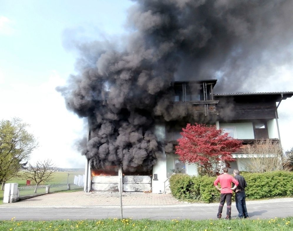 Durch die enorme Hitzentwicklung griffen die Flammen rasch auf die Fassade und den Dachstuhl des Hauses über. Während die Feuerwehr den Brand am Gebäude schnell unter Kontrolle bringen konnte, wurden die Löscharbeiten in der Garage durch mehrere Explosionen erschwert.