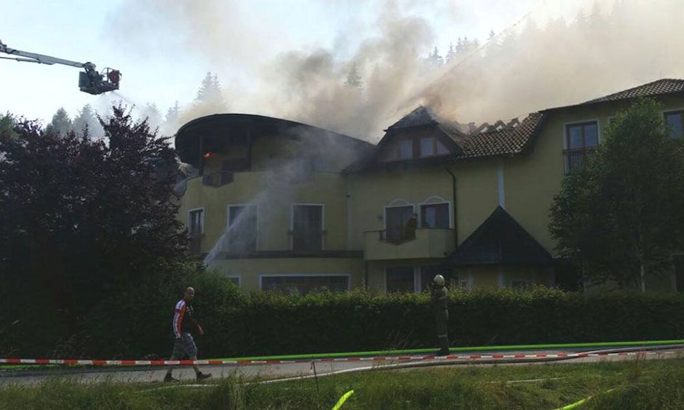 Im oberösterreichischen Bad Kreuzen standen nach einem Brand in einem Wellnesshotel acht Feuerwehren mit rund 200 Mann im Einsatz.