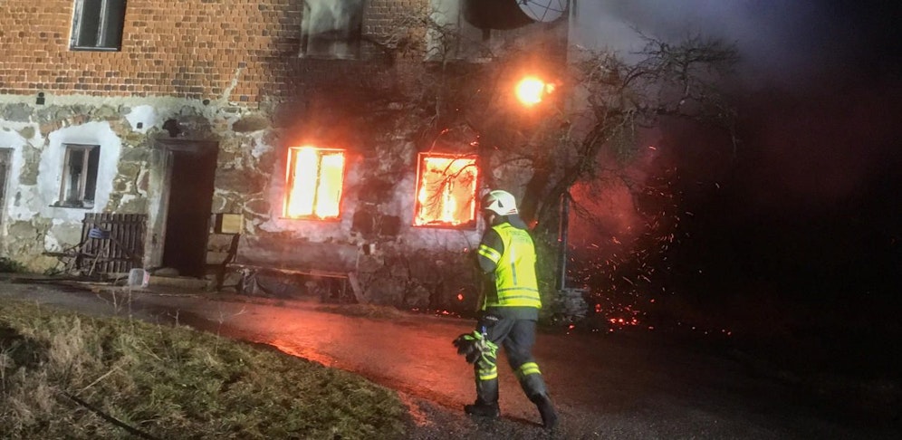In einem alten Bauernhaus in Alberndorf in der Riedmark ist in der Früh ein Feuer ausgebrochen. Ein Mann wurde im Haus von der Feuerwehr tot gefunden.