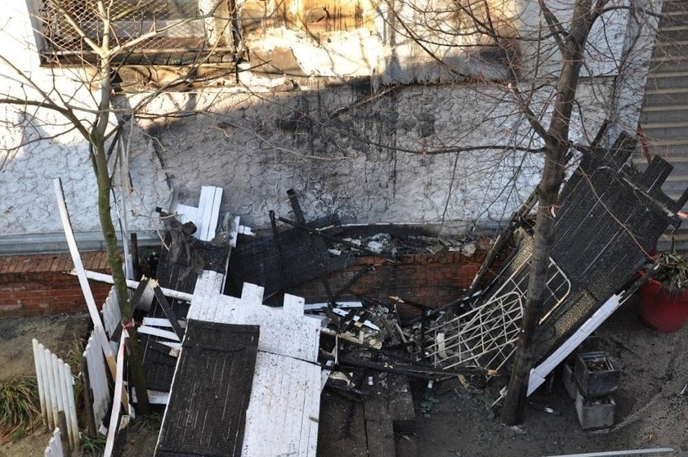 Durch die Flammen wurde auch die Hausfassade des angrenzenden Gastronomiebetriebes stark beschädigt. Darin hatte eine 31-jährige Mitarbeiterin geschlafen, die den Brand unverletzt überstand. Brandstiftung wird vermutet.