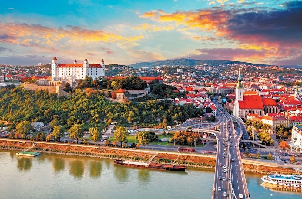 Schon vor 100 Jahren war es chic, mit der Trambahn nach Bratislava zum Kaffeetrinken zu fahren. Die Tradition ist geblieben, doch die Anreise mit dem Twin City Liner ist heute weitaus schicker geworden und vor allem bequem. Vom Wiener Schwedenplatz geht es direkt in die Altstadt von Bratislava. Günstig fährt man mit dem ÖBB-Ticket. In jedem Fall sollte man das Auto zuhause lassen, denn der gesamte Innenraum der Stadt ist gebührenpflichtige Parkzone und verhältnismäßig teuer.