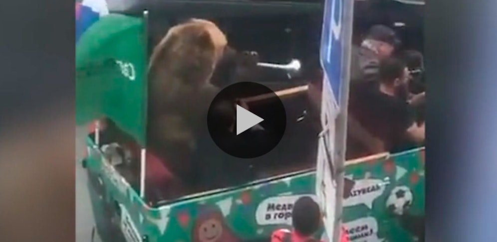 Peter Staunton, der für goal.com als Journalist am Turnier unterwegs ist, hat ein Video auf Twitter gestellt, das einen Bär auf einem Jeep zeigt, der eine Vuvuzela bläst und anschließend salutiert. "Gerade wurde mir das gesendet", schreibt Staunton dazu und ergänzt, dass dies irgendwo in Moskau passiert sein soll.