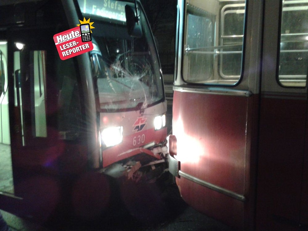 Kurz vor der Babenbergerstraße, Richtung Oper versagten wohl die Bremsen der Straßenbahn der Linie 1. Denn diese krachte gegen die 2er Bim.