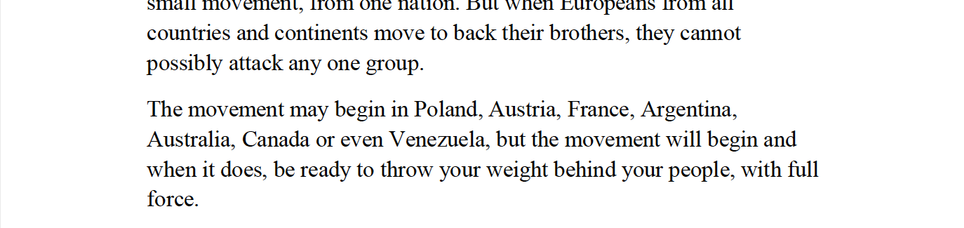 Eine nicht näher genannte Bewegung, der der Attentäter angehören will, werde in Polen und Österreich beginnen und sich ausweiten.