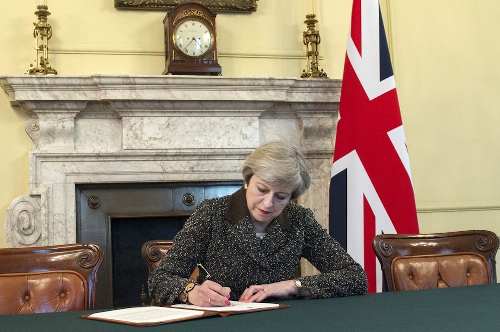 Die britische Premierministerin Theresa May hat am Dienstagabend den Antrag zum Austritt ihres Landes aus der Europäischen Union unterzeichnet. Am Mittwoch wird das Schreiben offiziell der EU übergeben - somit können die Verhandlungen beginnen.