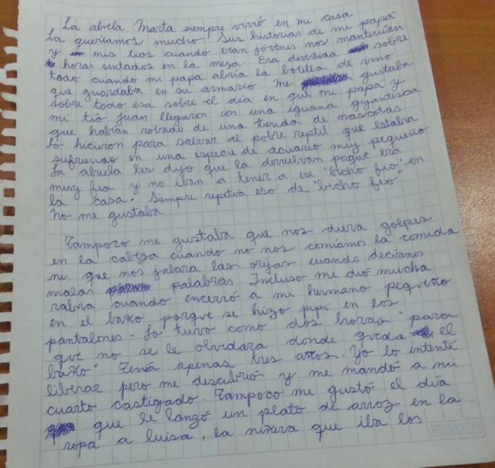 "Meine Oma Marta lebte bei uns im Haus. Wir haben sie sehr geliebt. Ihre Geschichten über Papa und meinen Onkel, als sie noch klein waren, haben uns stundenlang in den Bann gezogen. Wir hatten viel Spaß, besonders wenn Papa noch eine Flasche Wein öffnete, die er im Schrank aufbewahrt hatte. Besonders gut kann ich mich an den Tag erinnern, als Papa und Onkel Juan mit einem Leguan nach Hause kamen.