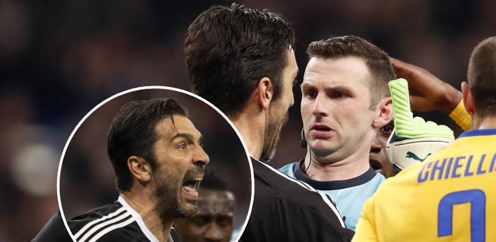 Bis zur Ausführung vergehen Minuten. Im Juve-Strafraum spielen sich wilde Szenen ab. Um Schiri Oliver bildet sich eine Traube aufgebrachter Turiner. Einer schreit besonders laut. Goalie-Legende Gigi Buffon ist außer sich, vergreift sich im Ton. Oliver stellt ihn mit Rot vom Platz.
