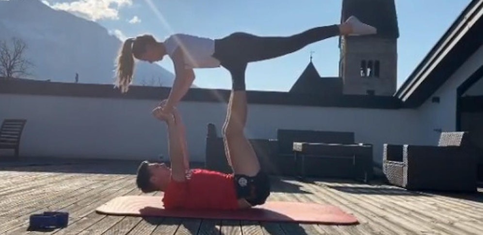 Bei der Ausübung seines Heimprogramms ist besonders Salzburgs Abwehrspieler Maxi Wöber kreativ geworden. Auf der Terrasse turnte der 22-Jährige mit seiner Freundin als Übungspartnerin.