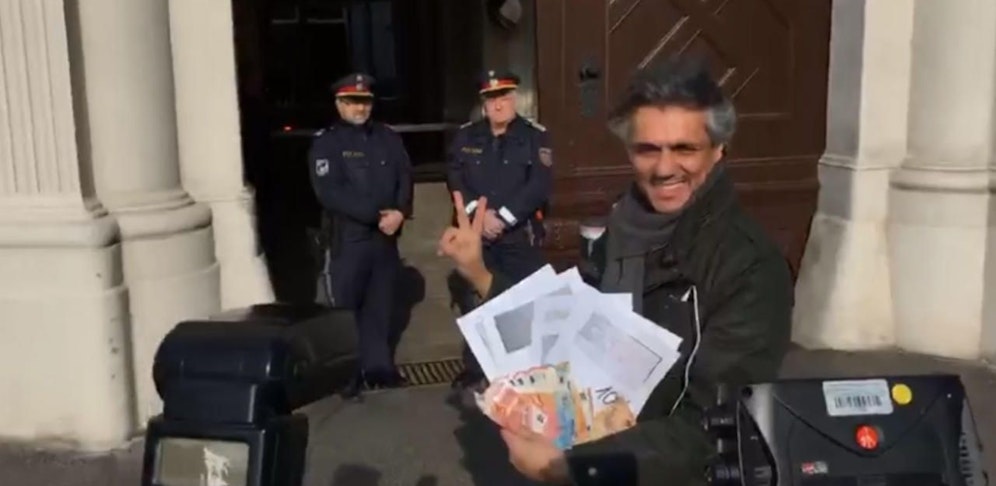 Nekkaz ließ es sich trotzdem nicht nehmen, sein Erscheinen als Erfolg und moralischen Sieg zu feiern und ließ sich mit Siegerpose, Strafmandaten und Bargeld ablichten. Die Polizisten beobachteten die Selbstinszenierung amüsiert. (red)