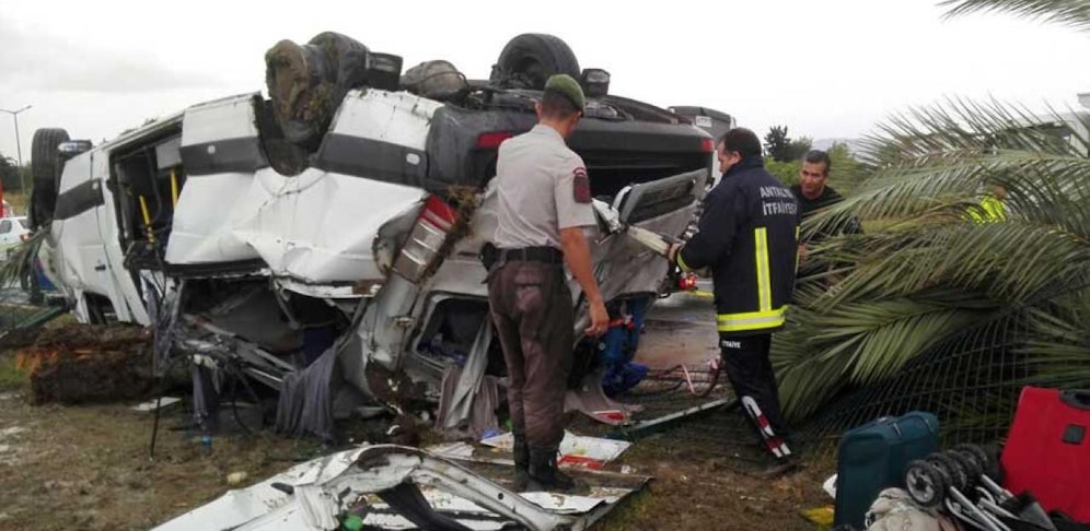 Das Fahrzeug raste laut Nachrichtenagentur Anadolu über eine Verkehrsinsel und krachte schließlich gegen eine Palme. Dabei starben drei Menschen, zehn weiter wurden verletzt.