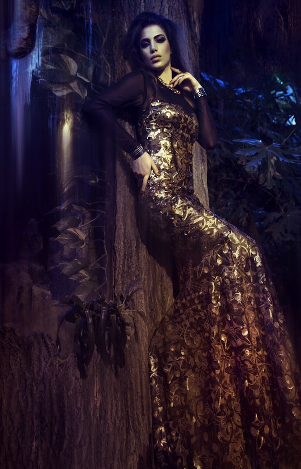 Wie ein Märchen aus 1001 Nacht entflammt die anmutige Ex-Miss Austria auf den Bildern und entführt in eine geheimnisvolle Traumwelt. Amina Dagi bezirzt dabei mit ornamentalischen Pailettenstoffen, edler Spitze und viel wallender Chiffon-Seide. Typisch für Callisti: Die Kreationen mit Leder-Riemen-Gilets und feinen Gürteln. Glamour pur - der große Auftritt auf Red Carpet Events, Cocktails und Bällen ist in diesen Roben garantiert.