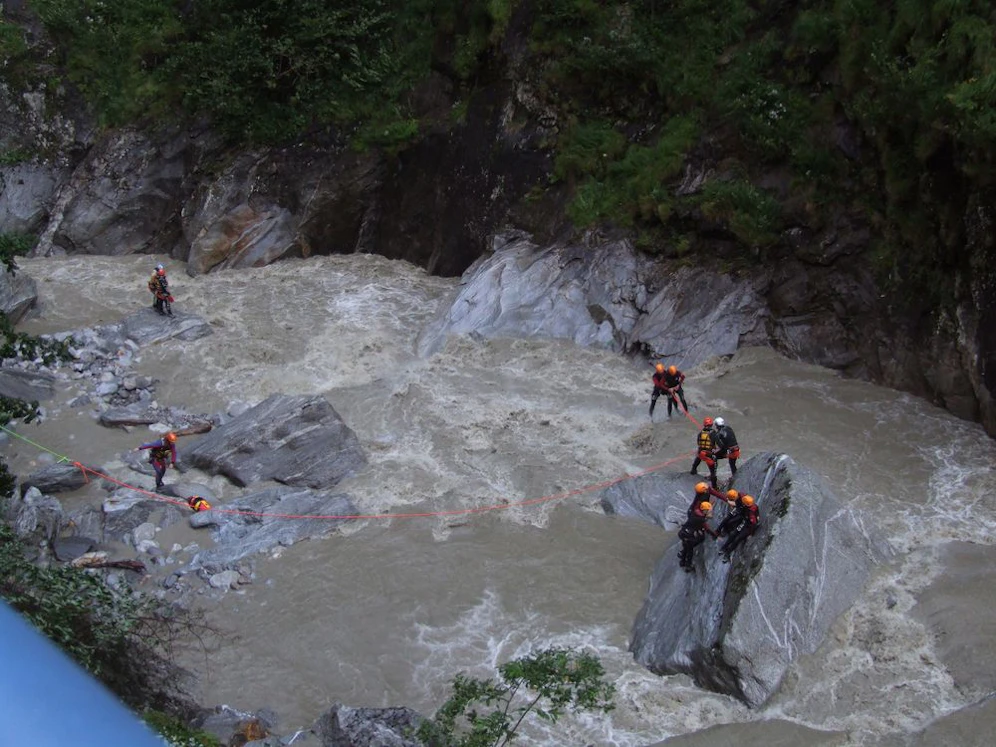 Die Einsatzkräfte waren kurz vor 11.00 Uhr alarmiert worden. Wegen starken Regens war das Wasser in der Zemmschlucht plötzlich gestiegen.