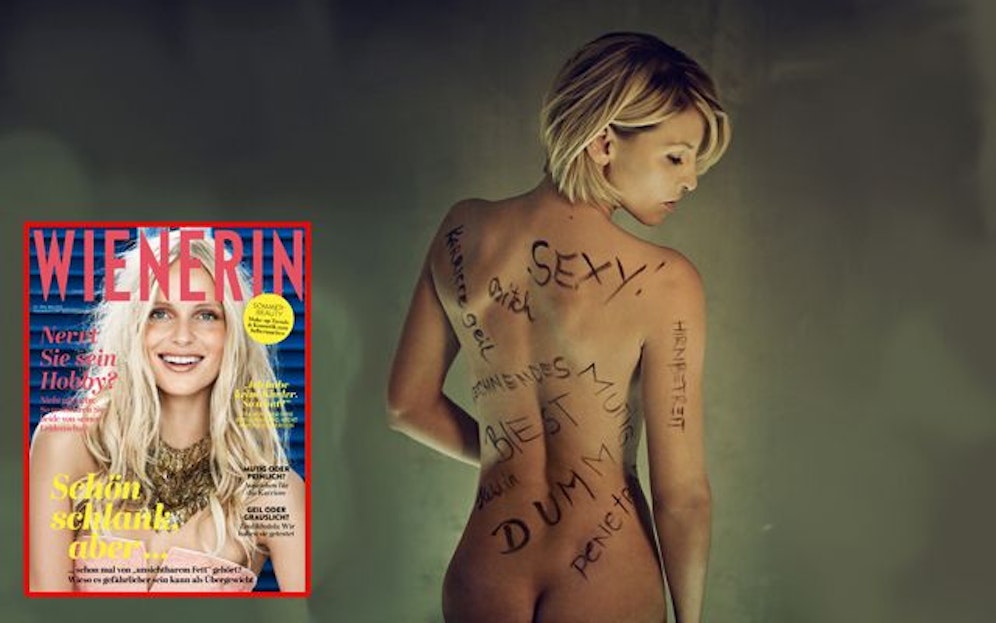In der Mai-"Wienerin" schlägt Cathy Zimmermann zurück - nackt! Auf dem hübschen Rücken die Aussagen, die sie gar nicht entzücken. "Dumm", "penetrant" und "karrieregeil", sind wohl nur einige der Sachen, die die Ex-Moderatorin zu hören bekam.