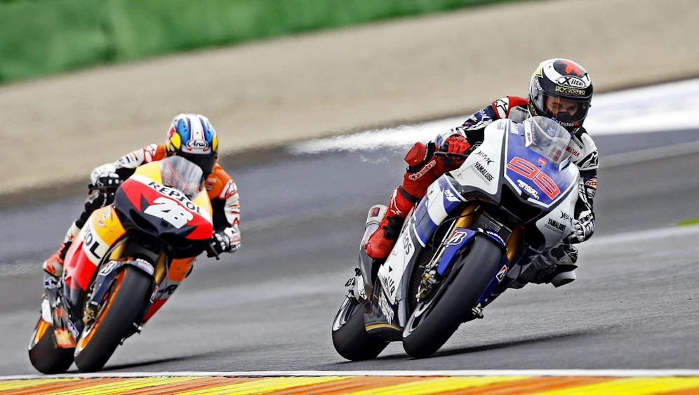 Weltmeister Jorge Lorenzo ist der krönende Saisonabschluss in der Motorrad-WM versagt geblieben. Der spanische Yamaha-Pilot, der vor zwei Wochen seinen zweiten Titel fixiert hatte, stürzte bei seinem Heimrennen in Valencia in der MotoGP-Klasse in Führung liegend kurz nach Halbdistanz - damit war der Weg frei für seinen Landsmann Dani Pedrosa. Der Vize-Weltmeister feierte mit einer Honda überlegen seinen siebenten Saisonsieg, fast 40 Sekunden vor dem Japaner Katsuyuki Nakasuga.