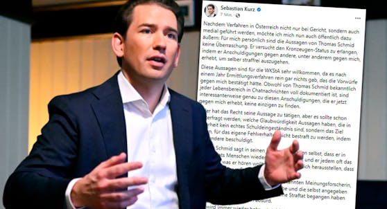 "Thomas Schmid sagt in seinen jetzigen Aussagen selbst, dass er in seinen Chats Menschen wiederholt belogen hat und er jedem oft das erzählt hat, was er hören wollte. Am Ende wird sich herausstellen, dass das auch in diesem Fall zutrifft. Der Vorwurf, dass ich mit einer mir unbekannten Meinungsforscherin, die ich noch nie im Leben getroffen habe und die selbst angegeben hat mich persönlich nicht zu kennen, eine Straftat begangen haben soll, ist aus vielen Gründen absurd", so Kurz.