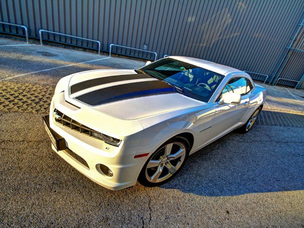 Aber nicht nur beim Design hat sich Chevrolet nahe ans Original gehalten, auch die Motorisierung ist so, wie man sie sich von einem Muscle-Car erwartet. Unter der Fronthaube, die wie beim Original in der Mitte eine breite Hutze trägt, schlummert ein 6,2 Liter V8, der jedem Autofan das Herz höher schlagen lässt.Für unseren Test haben wir das Coupé mit manuellem Getriebe gewählt, in klassischen Weiß mit schwarzen Dekorstreifen über Motorhaube und Kofferraumdeckel.
