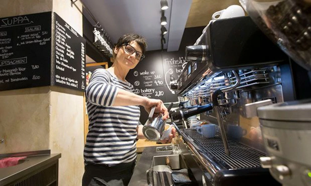 In der Operngasse 24 gibt’s neben Kaffee auch Bio-Tee und frisch gepresste Säfte. Bagels (3,20 Euro) und hausgemachter Kuchen (ab 1,90 Euro) runden das Angebot ab.