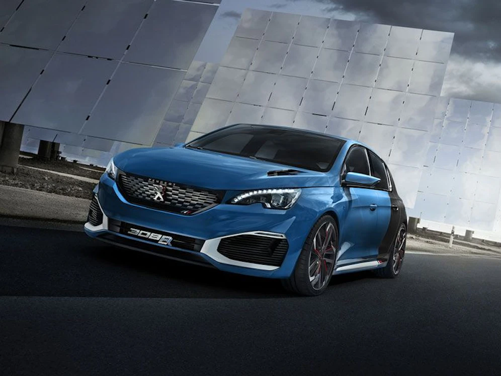 Der Peugeot 308 R HYbrid zeigt sich besonders dynamisch und hat eine stark veränderte Frontpartie bekommen, die ihn noch bulliger wirken lässt.