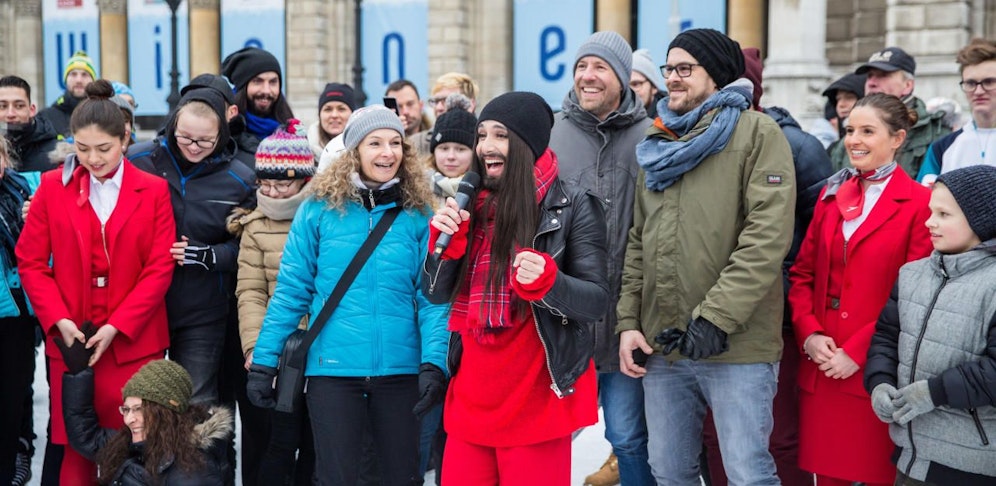 Anlässlich des 60. Geburtstages der Austrian Airlines gab Conchita Wurst am Samstag live beim Wiener Eistraum ein Geburtstagsständchen der ganz besonderen Art zum Besten. In einem weltumspannenden Musikprojekt interpretierte die Song Contest-Gewinnerin gemeinsam mit internationalen MusikerInnen das Lied "Happy Birthday" neu.