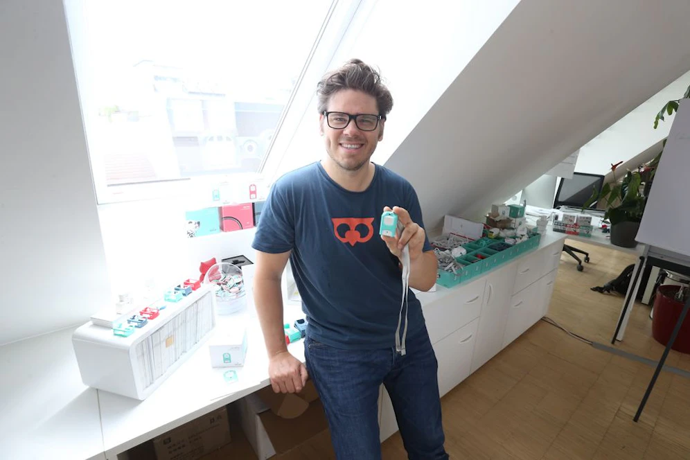 „Mein Sohn ist auf dem Spielplatz in Tel Aviv verschwunden. Ich habe ihn panisch gesucht“, erzählt „Locca“-Gründer Julian Breitenecker (41). Damit so etwas nicht mehr passiert, erfand er das „LoccaPhone“. Die erste Notizen dazu machte er sich bereits auf dem Rückflug vom Urlaub, in Wien ließ er das Gerät und die dazugehörige App entwickeln.