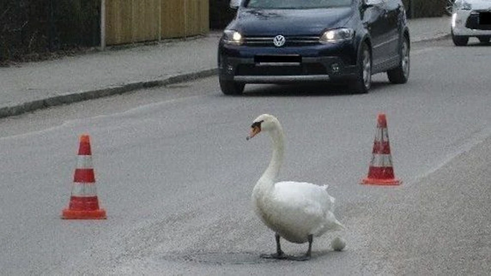 "Man zieht die Lederjacke an, macht sich auch ein bisschen größer und scheucht ihn vorsichtig von der Straße", beschrieb ein Polizeisprecher die Aktion. Das Ei nahmen die Tierretter mit, um es ausbrüten zu lassen. Der Schwan verschwand - vermutlich zu seinen Artgenossen an dem nahen Fluss Würm.