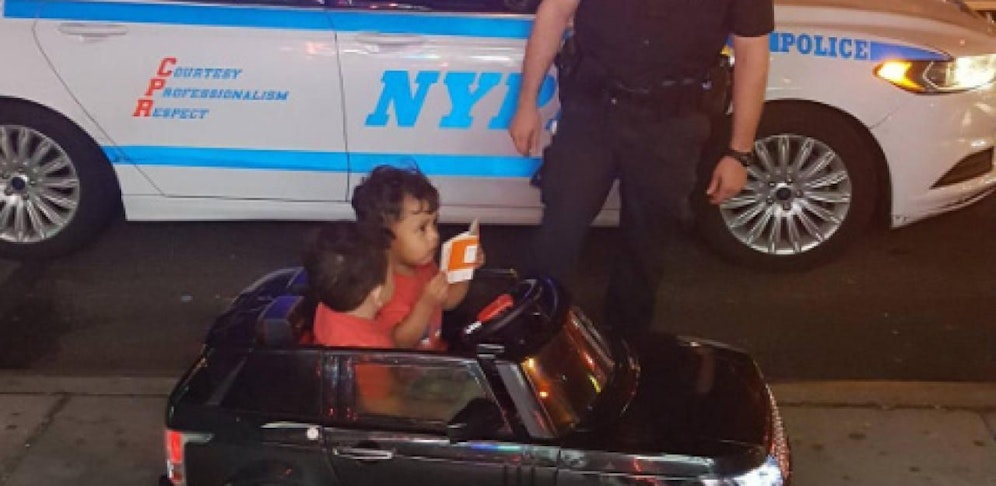 "Führerschein und Fahrzeugpapiere, bitte", hieß es für die Zwillinge. Der Vater der Buben filmte die witzige Aktion der New Yorker Polizei mit.