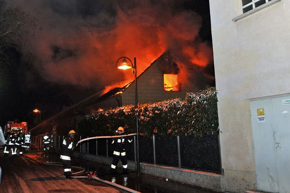 Über die Rückseite verschaffte sich ein Löschtrupp einen Zugang über ein Fenster und begann die Löscharbeiten unter Atemschutz auch im Inneren des Wohnhaues. Bereits um ca. 01:50 Uhr war der Brand unter Kontrolle. Der Dachstuhl des Gebäudes brannte aber komplett ab und Flammen drangen auch teilweise bis ins Erdgeschoß vor.