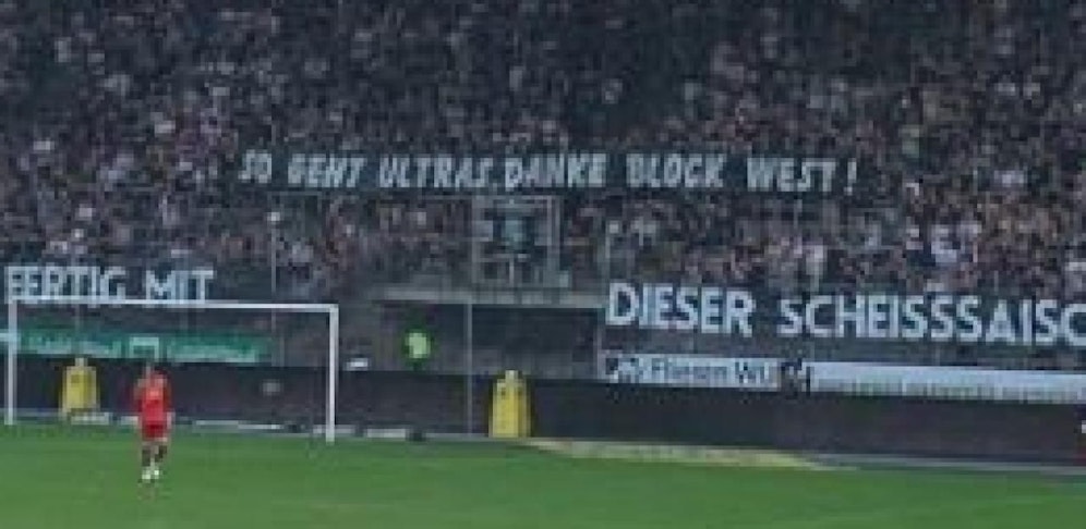 Mit einem Spruchband mit der Aufschrift "Ruhe in Frieden, Heimo" gedachten die Wiener Fans bereits im Hinspiel ihrem verstorbenen Fan-Kollegen. (Heute Sport)