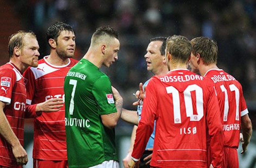 „Du hast 95 Kilo, so wie du aussiehst. Wehr dich doch mal“, sagte Langeneke laut TV-Aufzeichnung. Eine Provokation, die Arnautovic nicht auf sich sitzen ließ und seinen Kontrahenten mit einem leichten Kopfstoß bestrafte. Obwohl alles mit dem Auschluss des Österreichers rechnete, zeigte Schiedsrichter Peter Sippel Arnautovic nur Gelb. Sehr zum Ärger der Düsseldorfer Spieler. „Ein klarer Platzverweis“, sagte Langeneke.