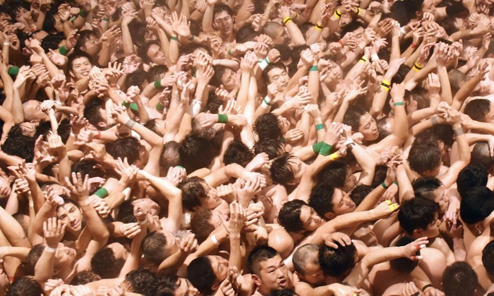 Das Fest Hadaka Matsuri ist 500 Jahre alt und bringt Außenstehende noch immer zum Staunen: Denn bei der Veranstaltung im Saidaiji-Tempel in Japan rangeln sich 10.000 halbnackte Japaner um hölzerne Glücksbringer.