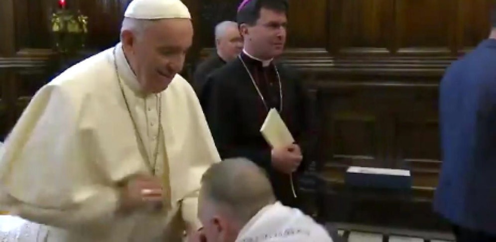Die zahlreichen erfolglosen Versuche von Gläubigen, die im Wallfahrtsort Loreto (Italien) den Fischerring des Papstes küssen wollten, sorgten für Lacher – aber auch für viel Empörung.