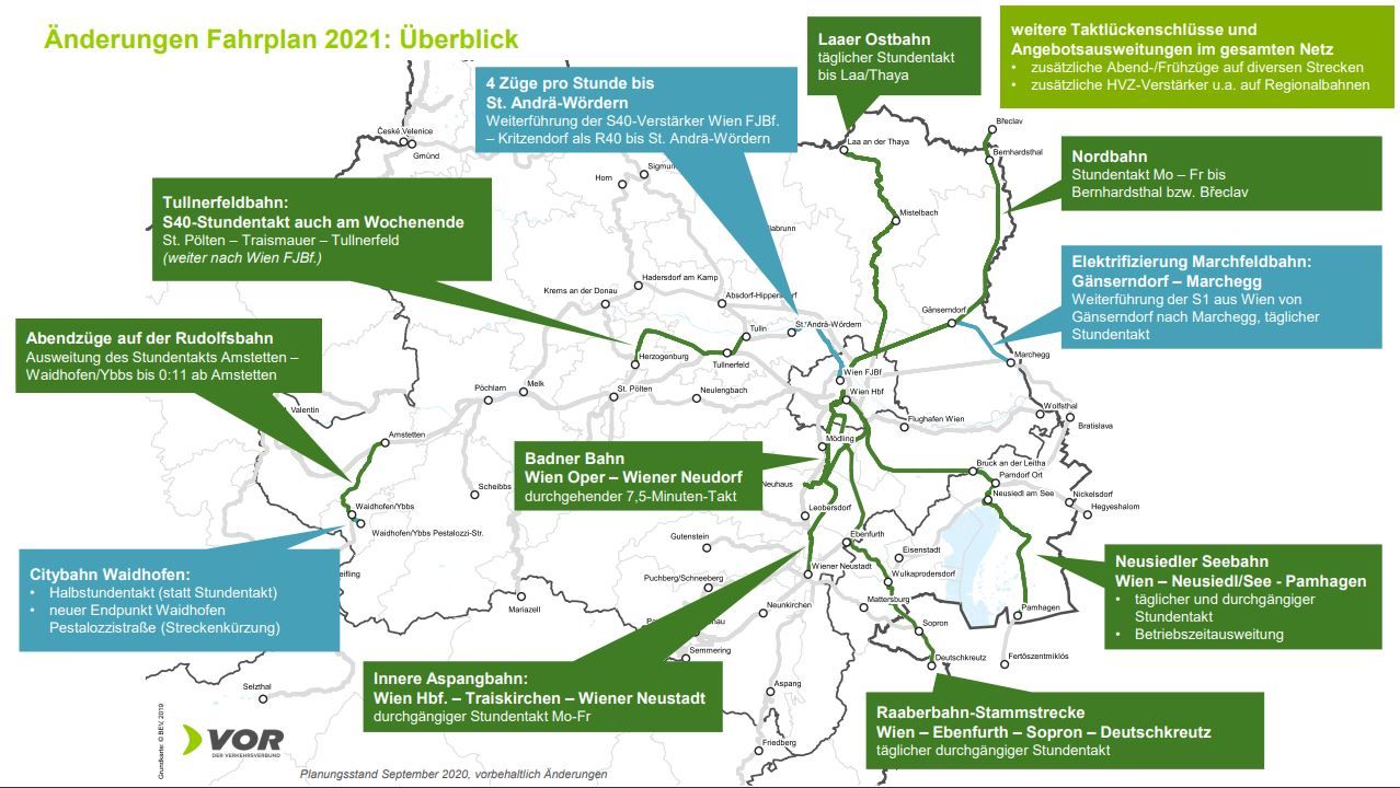 Sämtliche Verbindungen sind unter anachb.vor.at bzw. der VOR AnachB APP abrufbar, Verbesserungen des kommenden Fahrplanes für Bus und Bahn unter "VOR-Fahrplanwechsel" zusammengefasst.