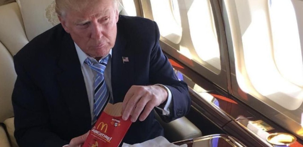 Dass Donald Trump gerne Fast Food in sich hineinschaufelt, das ist hinlänglich bekannt. Schon vor seiner Wahl zum US-Präsident machte der Milliardär kein Geheimnis aus seiner Vorliebe für Kalorienbomben. Zwei ehemalige Mitarbeiter Trumps, Corey Lewandowski und David Bossie, haben nun in einem Buch über die Details ausgepackt.