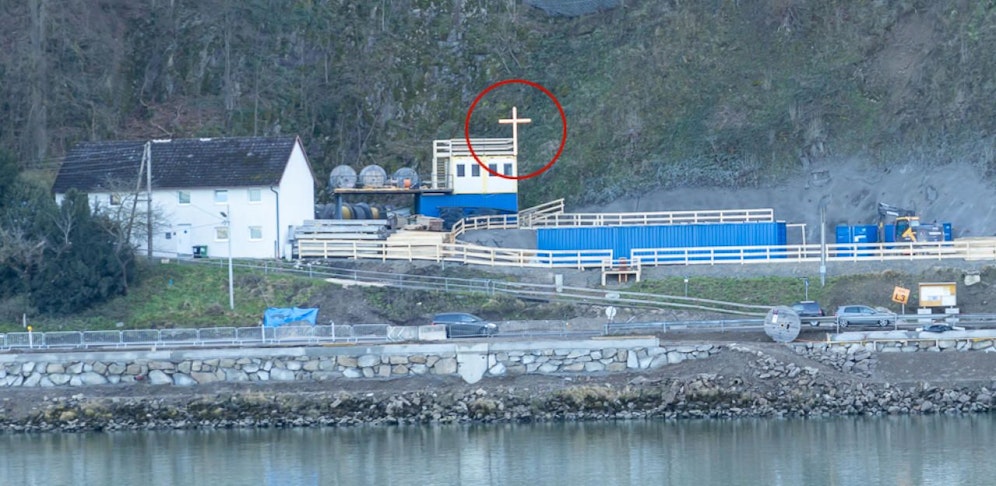 Das Kreuz ist mehrere Meter hoch, aus Holz und ist beleuchtet. Kein Wunder, dass es bei Passanten schon für Aufsehen sorgt.